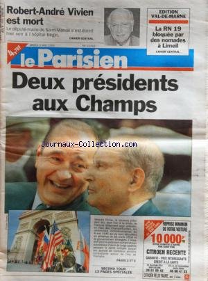 Read PARISIEN VAL DE MARNE (LE) [No 15762] du 09/05/1995 - DEUX PRESIDENTS AUX CHAMPS / JACQUES CHIRAC ET FRANCOIS MITTERRAND -ROBERT-ANDRE VIVIEN EST MORT - PDF